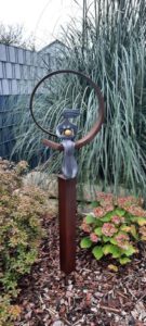 Eli in einer „Skulptur Wandels“ geschaffen von dem Metallkünstler Wolfgang Walter